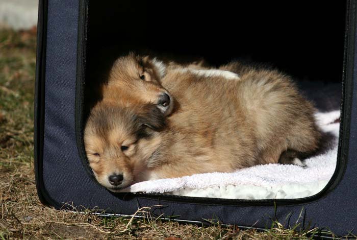 die 5 1/2 Wochen alten Welpen machten ihren ersten Ausflug.